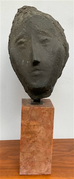 Virgilio Ciminaghi "Testa di ragazza" 1955 scultura in bronzo su base in marmo h