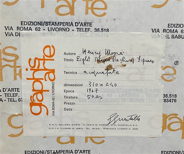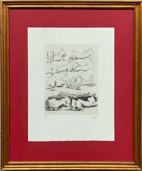 Henry Moore "Eight Draped Reclining Figures" 1967 acquaforte (lastra cm 30,5x24;