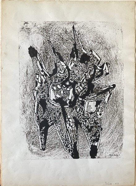 Umberto Milani "Tripode" 1958 tecnica mista su carta cm 66,5x48 firmato nell'imm