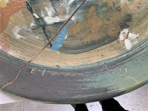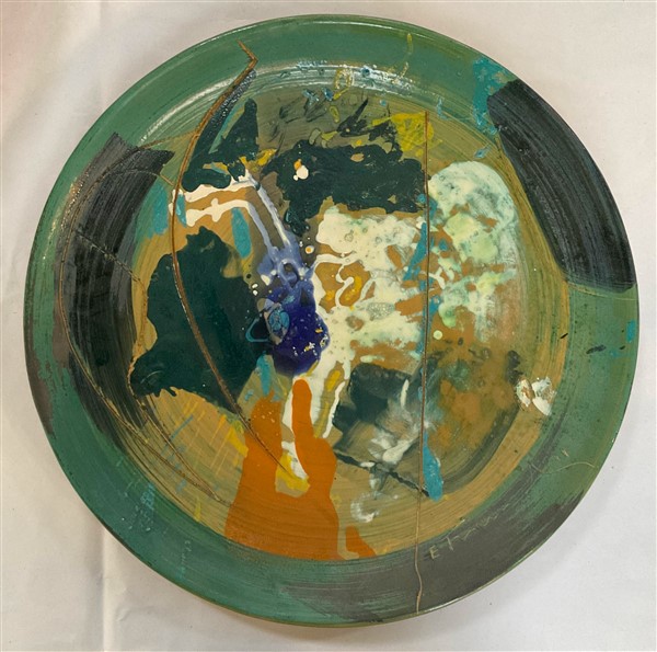 Edoardo Franceschini Piatto in terracotta dipinta, parzialmente smaltata e graff