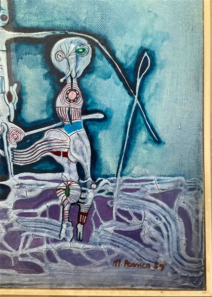 Mario Persico "In attesa di..." 1959 tecnica mista e collage su tela cm 50x40 fi