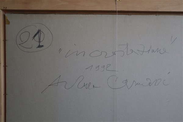 firmato e datato in basso al centro; firmato, datato e titolato al verso. In cornice