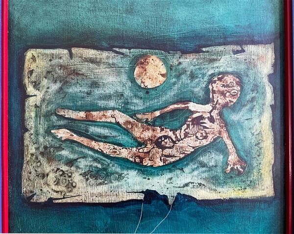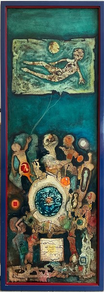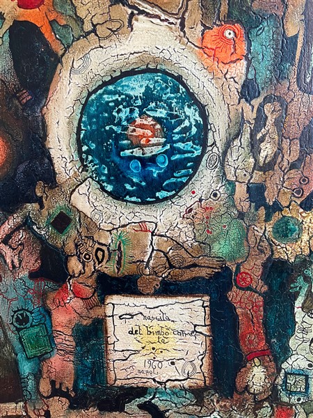 Mario Persico "Nascita del bimbo cometa" 1960 tecnica mista su tavola cm 160x57