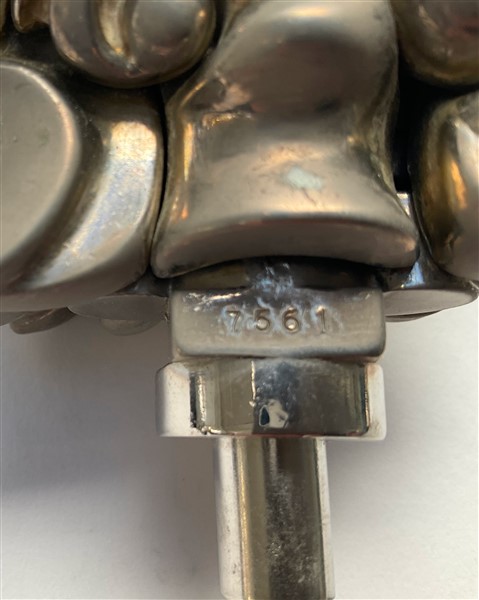 Scultura multiplo in Zamak nichelato scomponibile in 17 elementi con anello in