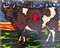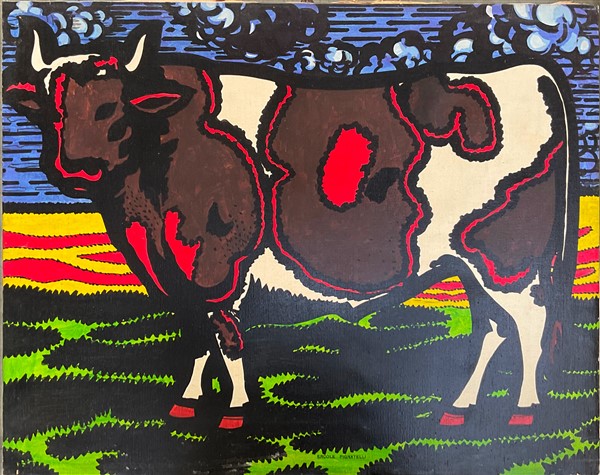 Ercole Pignatelli "Il bue della Simmenthal" acrilico su tela cm 65x80 firma a t