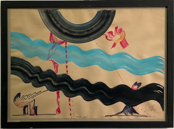 Sergio Dangelo "Buona pesca" tecnica mista su carta applicata su cartoncino cm