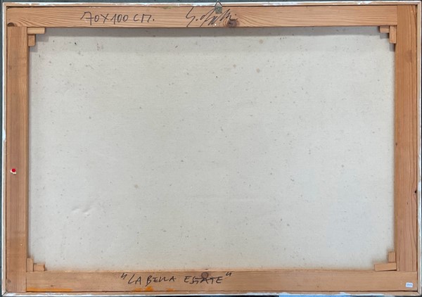 Sergio Dangelo "La bella estate" tecnica mista e collage su tela cm 70x100 firm