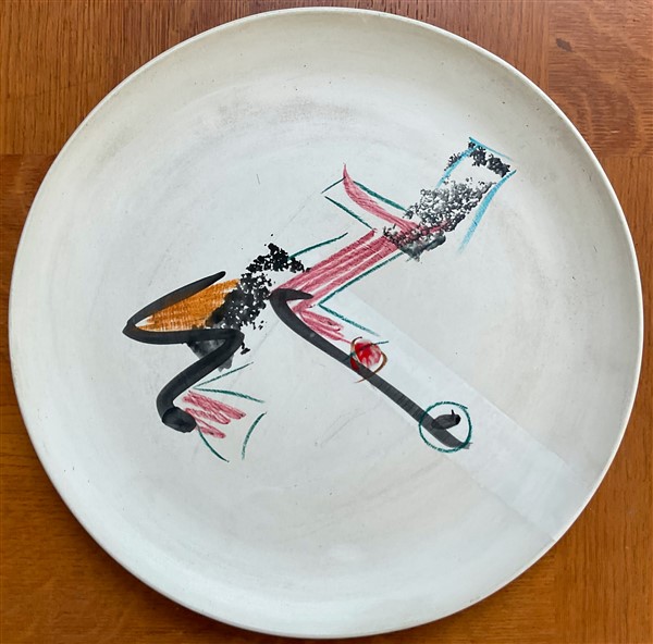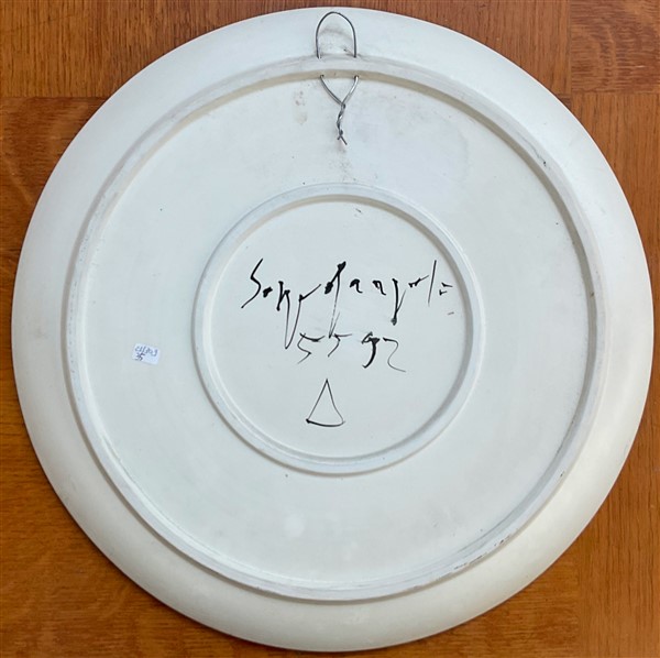 Sergio Dangelo Ceramica dipinta, parzialmente sotto vetrina diam cm 40 firmata e