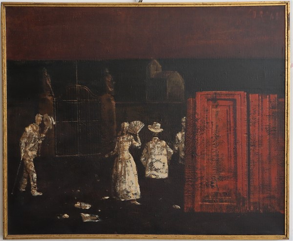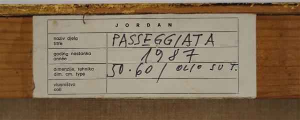 Jordan Vasilije "Passeggiata" 1987 acrilico su tela cm 50x60 firmato in alto a d