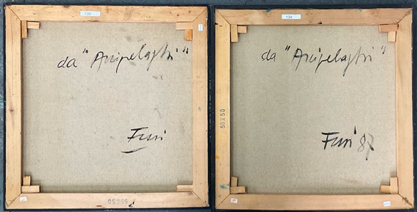 Walter Fusi "Arcipelaghi" due dipinti ad acrilico su tela cm 50x50 firmati e ti