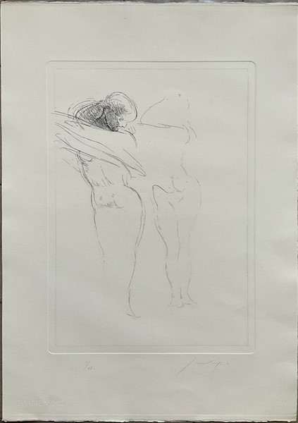 Piero Guccione "Due figure" 1970 puntasecca (lastra cm 49x35; foglio cm 70x49) f