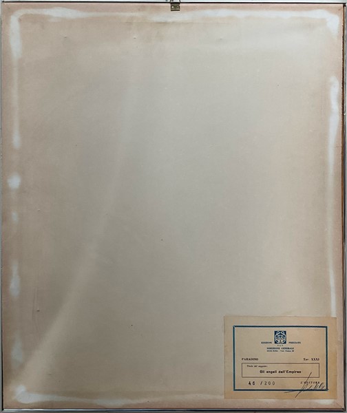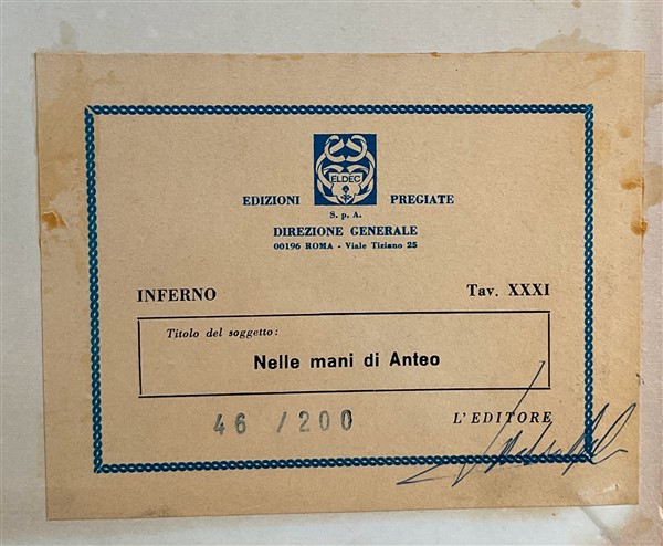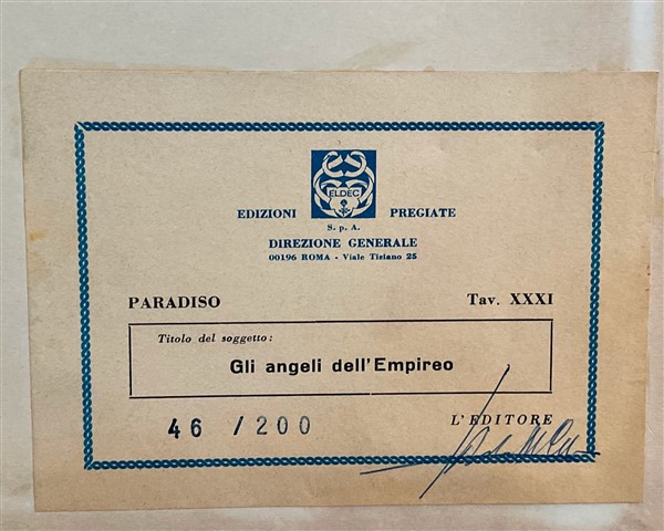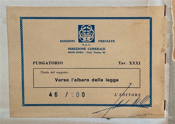 Opere accompagnate dal volume "100 xilografie di Salvador Dalì per la Divina Commedia" Catalogo ragionato, Edizioni Eldec, Roma, 1980, in cui sono pubblicate a colori a pag. 138