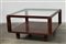 Tavolino da salotto in legno a due ripiani, piano superiore in vetro. Italia, anni '60/'70. (cm 70x40,5x70) (lievi difetti)