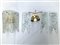 Coppia di appliques a due luci, struttura in ottone e pendenti in vetro sabbiato incolore con inclusioni senza fusione nere. Italia, anni '80/'90. (h cm 25) (difetti alla struttura)