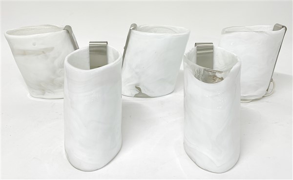 La Murrina Cinque lampade da appoggio con paralume in vetro lattimo e montatura