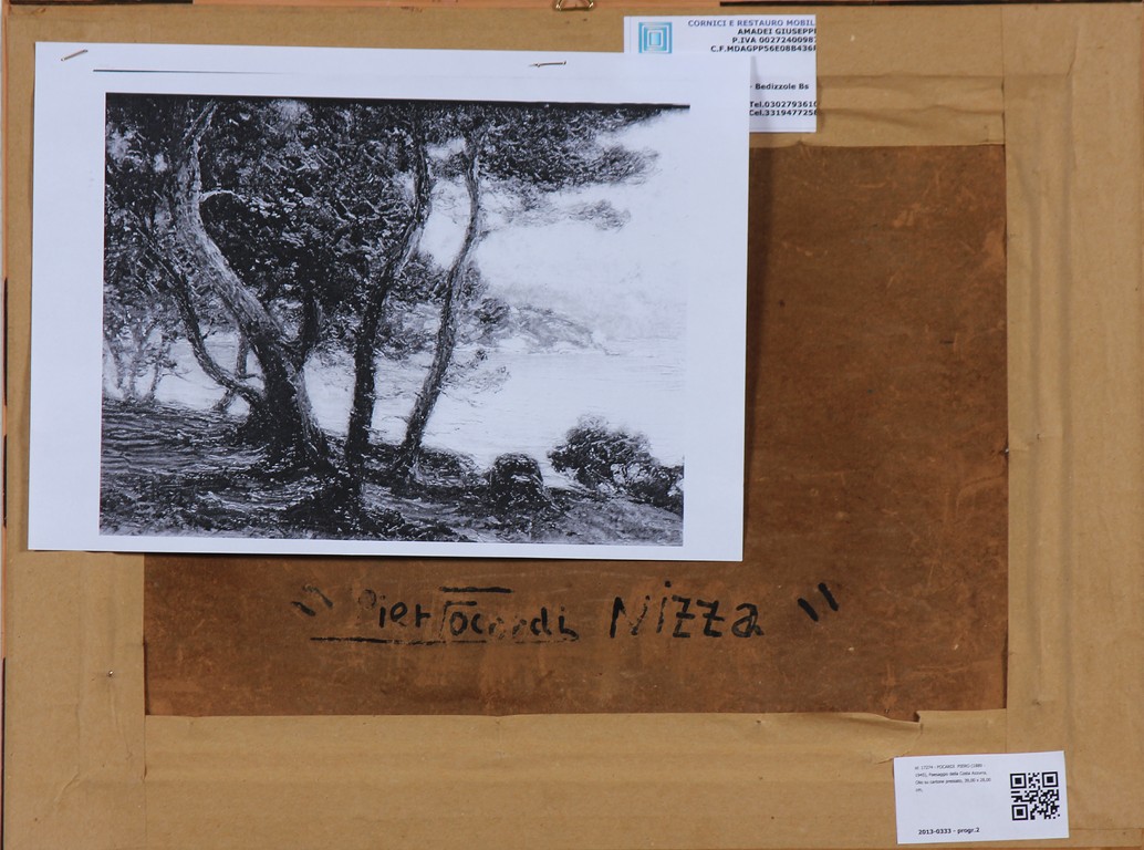 FOCARDI PIERO (1889 - 1945) Paesaggio della Costa Azzurra. Olio su cartone pressato. Cm 39,00 x 28,00. Anni '30/'40. Autentica su fotografia a cura di Luciano Anelli. Cornice presente