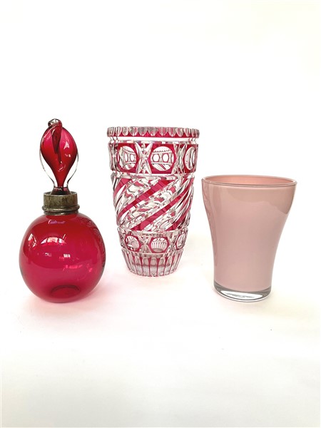 Lotto composto da due vasi e una bottiglia di materiali, epoche e manifatture differenti. (h max cm 29,5) (lievi difetti)