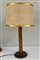 Lampada da tavolo in metallo dorato a finto bambù, base in legno e paralume in stoffa. Italia, anni '70. (h cm 67) (difetti)