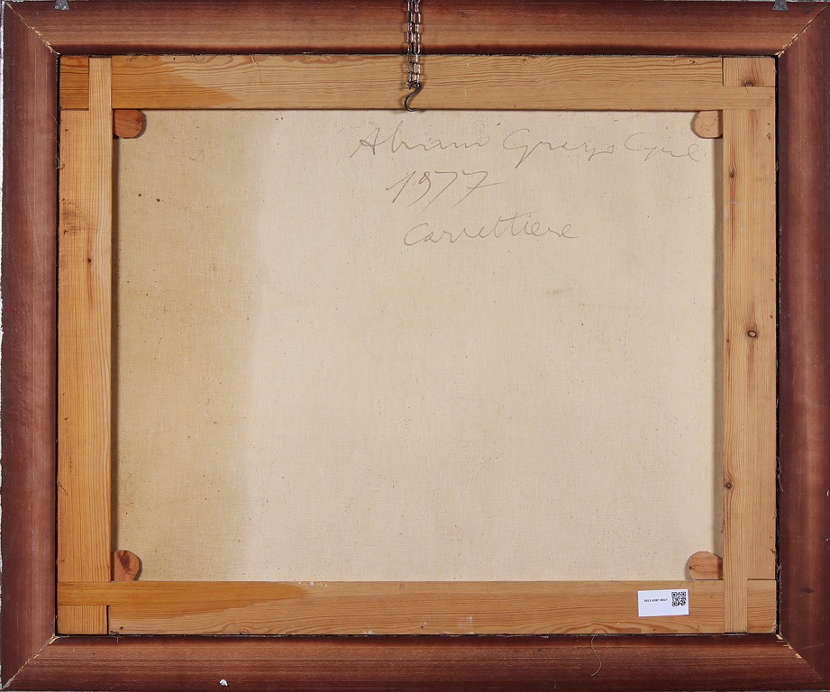 GRASSO CAPRIOLI ADRIANO (n. 1927) Carrettiere. 1977. Olio su carta su tela. Cm 100,00 x 80,00. Al retro firma, anno e titolo. Cornice presente