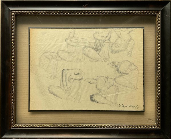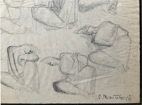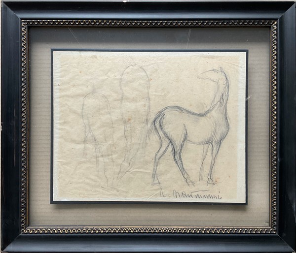 Napoleone Martinuzzi Due studi a matita su carta raffiguranti cavalli e uomini a