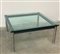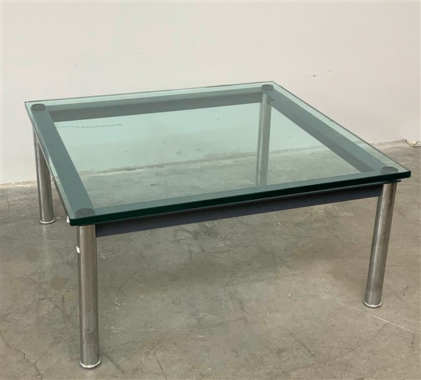 Tavolino da salotto modello "LC10". Produzione Cassina, Meda. Acciaio cromato, verniciato e cristallo molato. (cm 69,5x33x69,5)