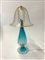 Grande lampada da tavolo in vetro costolato trasparente blu, paralume in vetro trasparente con inclusioni di foglia d'oro. Seconda metà secolo XX. (h cm 92) (lievi difetti)