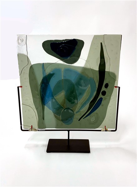 Ansgar Elde Lastra scultorea in vetro policromo, su piedistallo in metallo. Ital