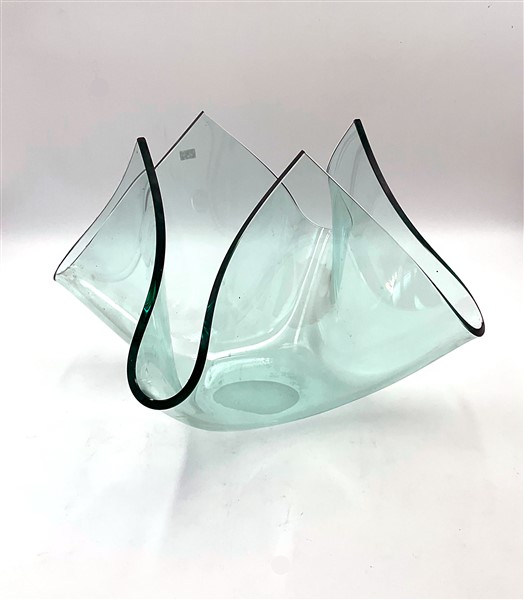 Fontana Arte Vaso a fazzoletto con base quadrangolare in vetro trasparente incol