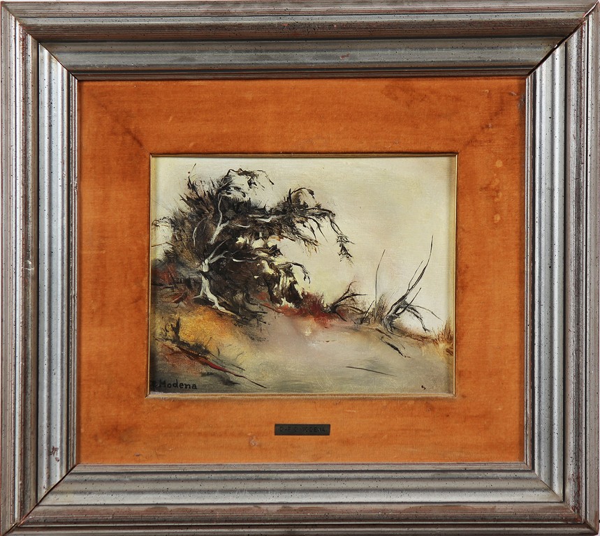 MODENA DARIO (n. 1952) Un aspro cespuglio. Olio su tela . Cm 30,00 x 25,00. Firma in basso a sinistra. Titolo al retro. Cornice presente
