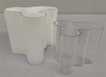 Alvar Aalto Due vasi in vetro incamiciato lattimo e trasparente incolore, prodot