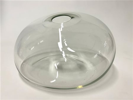 Vaso in vetro soffiato trasparente incolore. Murano, secolo XX. Firmato a punta. (d cm 31) (lievi difetti)