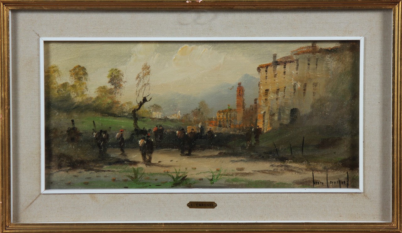 CARGNEL LUCIO (1903 - 1998) Rustico di salice. Olio su tela . Cm 60,00 x 30,00. Firma in basso a destra. In allegato all'opera carta di garanzia a cura dell'Accademia di cultura e critica d'arte, firmato dall'artista. . Cornice presente