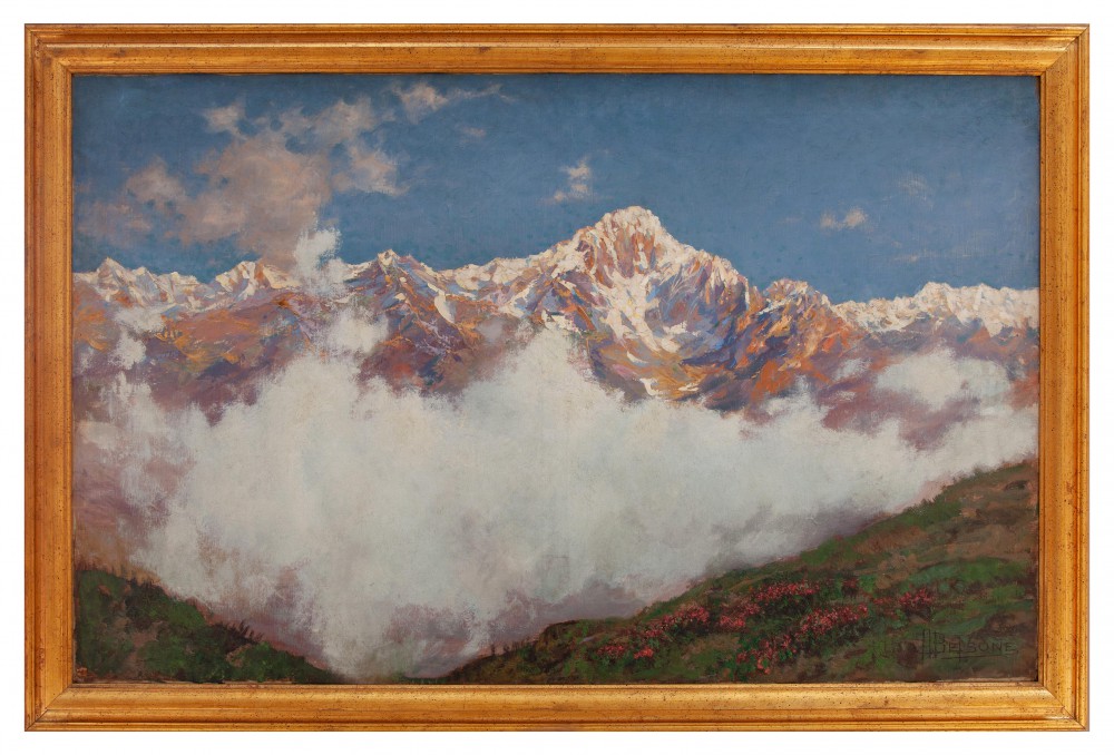 Alfredo Beisone Pinerolo (TO) 1882 - Torino 1957 Il monte Bianco Olio su tela cm 93x150.