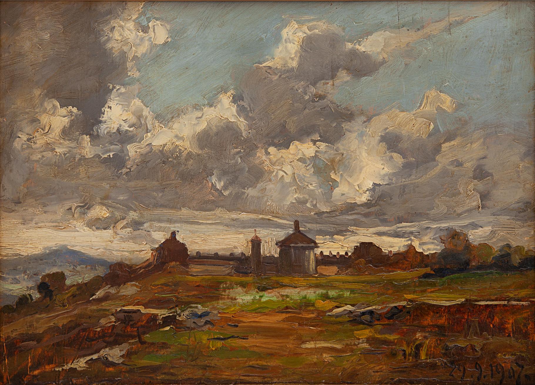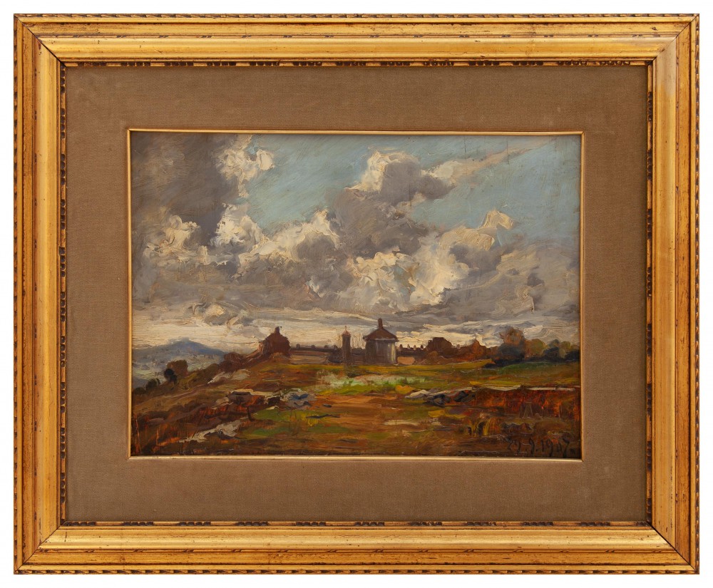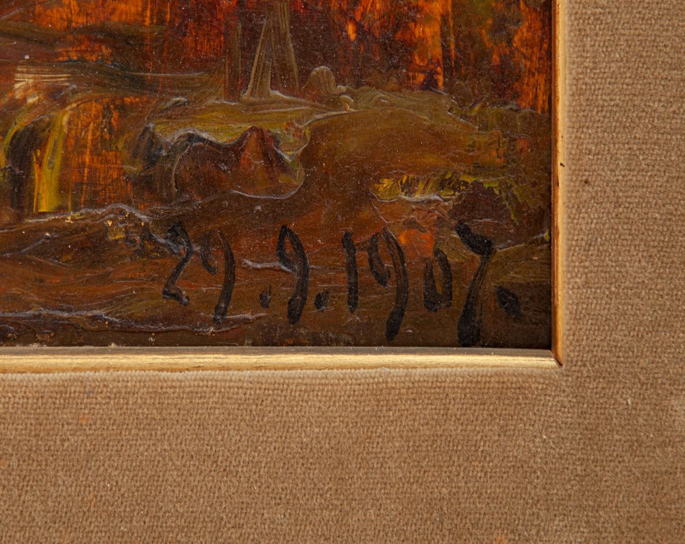 Lorenzo Delleani Pollone (VC) 1840 - Torino 1908 Oropa Olio su tavola cm 31x43 datato in basso a dx 29.9.1907.