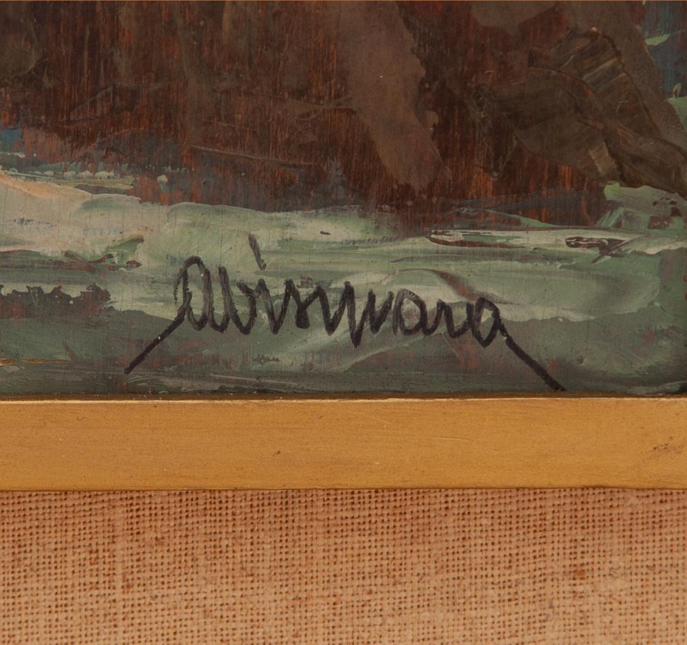 Ambrogio Vismara Seregno 1900 - Milano 1994 Paesaggio montano Olio su tavola cm 60x49,5.