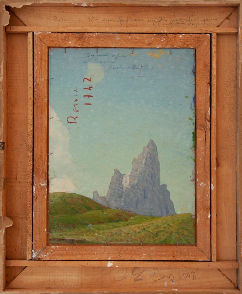 Oreste Albertini Torre del Mangano (PV) 1887 - Besano (VA) 1953 Paesaggio collinare Olio su tavola cm 30x40.