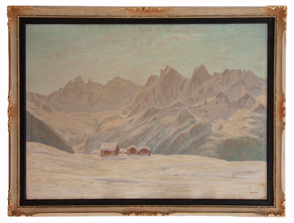 Luigi Binaghi Como 1890 - 1978 Neve in alta montagna Olio su tela applicata su masonite cm 99x134.