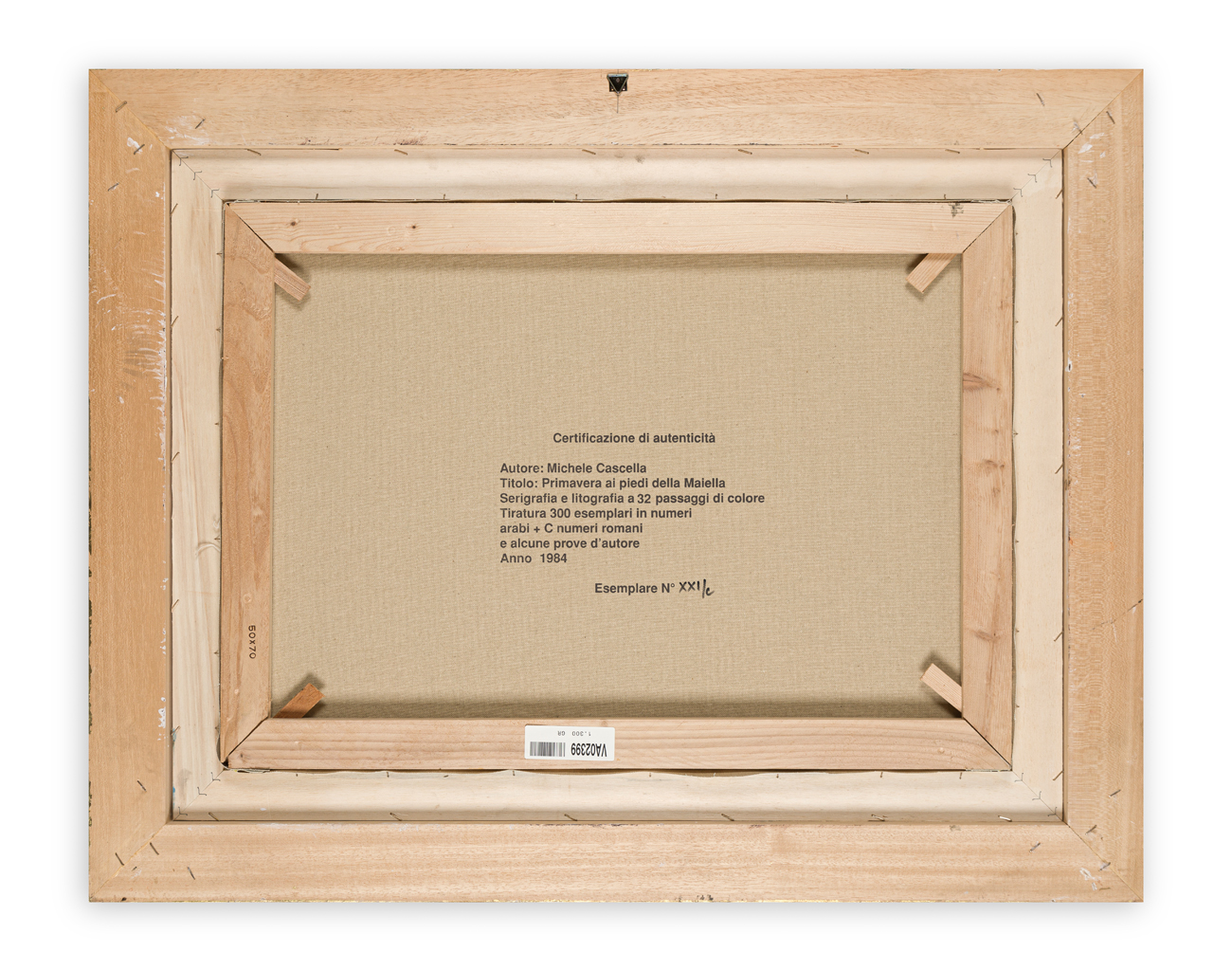 Certificazione di autenticità al retro