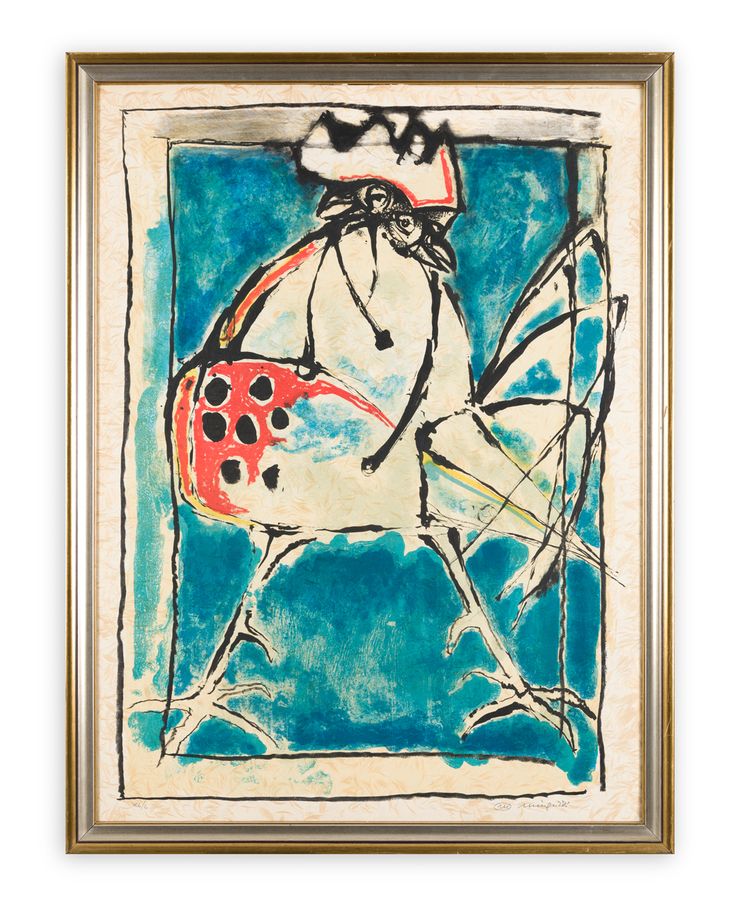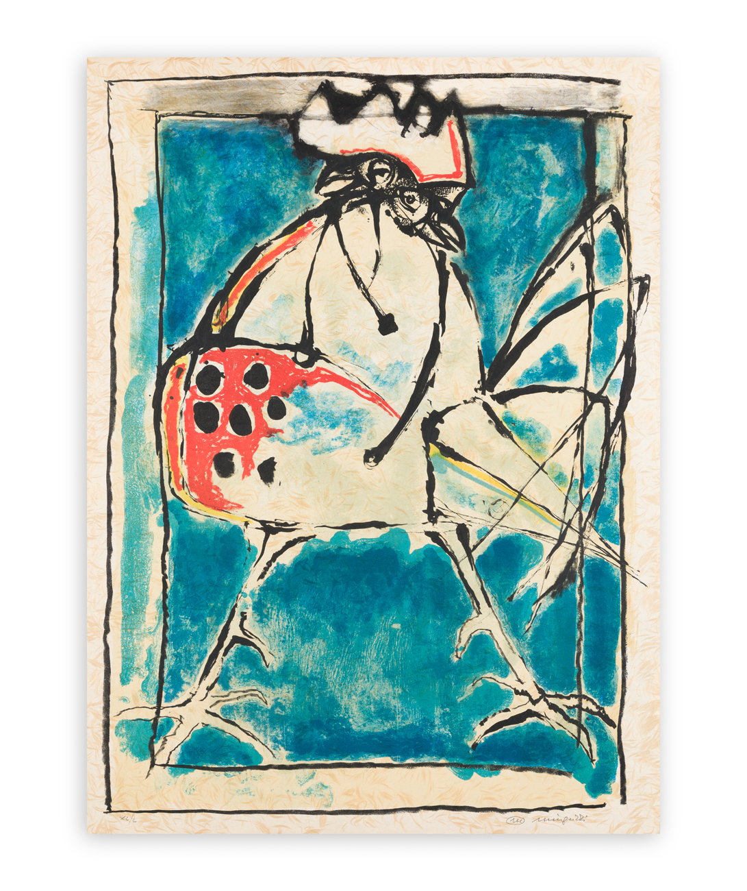 LUCIANO MINGUZZI (1911-2004) - Gallo bianco in campo azzurro, 1985