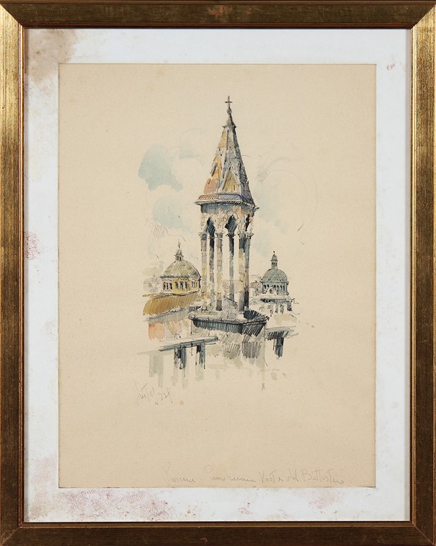 Lotto 157 | ANONIMO Parma, panorama vista del Battistero. 1939. Tecnica mista su...