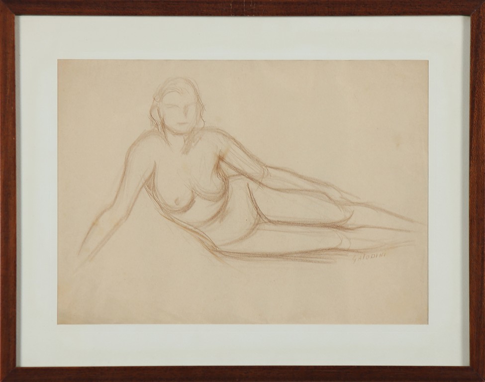 SALODINI CARLO (1903 - 1950) Nudo di donna. Matita su carta. Cm 34,00 x 23,00. Firmato in basso a destra. Anni trenta. Cornice presente