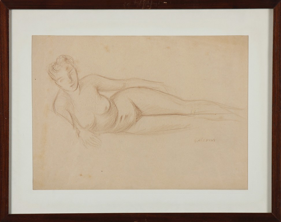 SALODINI CARLO (1903 - 1950) Nudo di donna. Matita su carta. Cm 24,00 x 34,00. Firmato in basso a destra. Anni trenta. Cornice presente