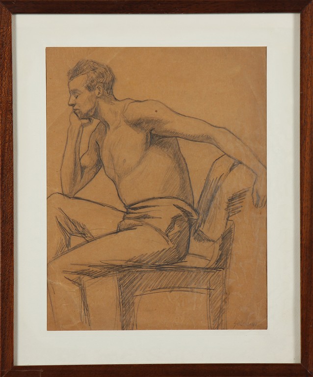 SALODINI CARLO (1903 - 1950) Ritratto d'uomo seduto. Matita su carta. Cm 23,00 x 31,00. Firmato in basso a destra. Anni trenta. Cornice presente