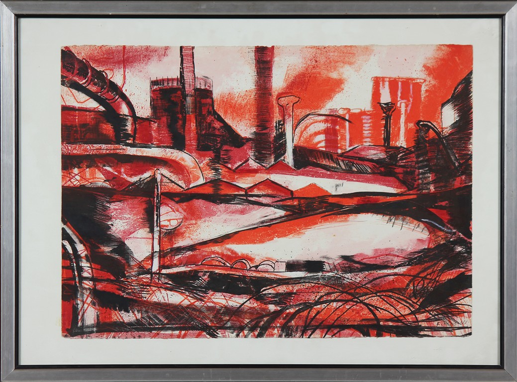 FARULLI FERNANDO (1923 - 1997) Senza titolo. Litografia ritoccata a mano. Cm 65,00 x 46,00. Firma in basso a destra. Cornice presente