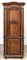 Antico cantonale in noce a due ante pannellate e lesene con bordure modanate, c