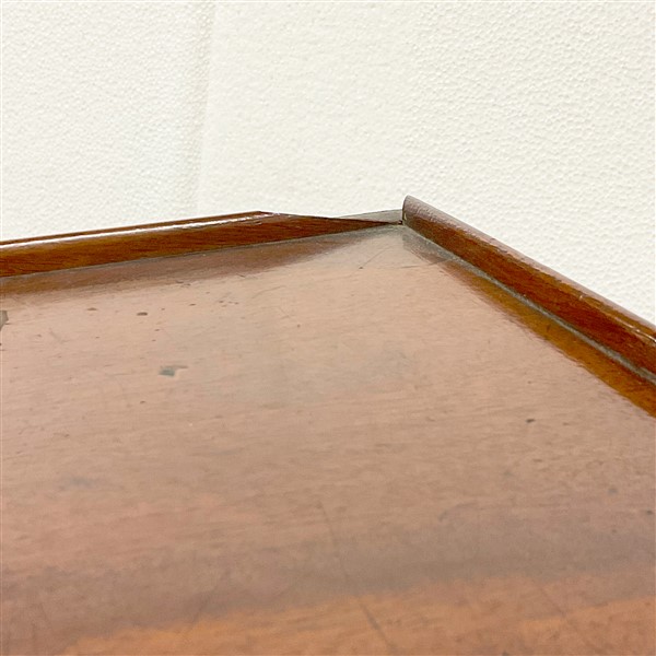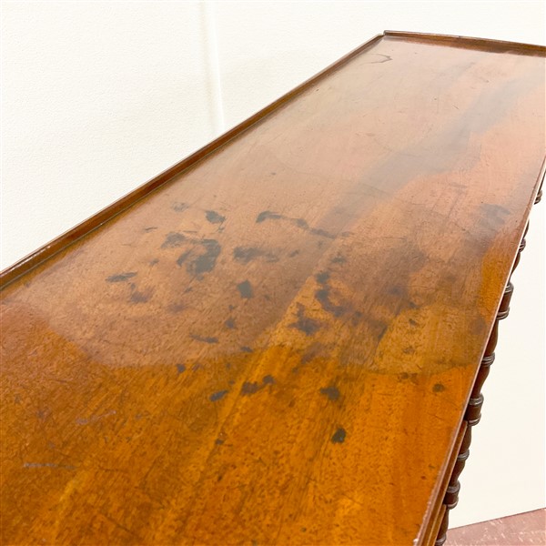 Etagère a cinque ripiani in mogano con montanti e traverse laterali tornite, bordi scanalati. Secolo XIX (cm 105x130x27,5) (difetti)