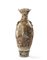 Vaso in porcellana Satsuma decorato con guerrieri in un paesaggio con montagne sullo sfondo, anse leonine con fiocco passante (h. cm 126) poggiante su colonna in legno chiaro moderno (h. cm 49)