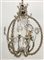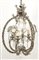 Lampadario a cesto a cinque luci con struttura in metallo decorata da rosette,