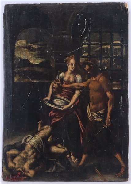 Ignoto Decollazione del Battista Olio su tavola, cm 36,5x26 (difetti e restaur