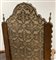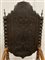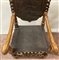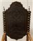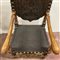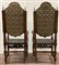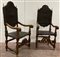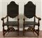 Coppia di seggioloni in noce con braccioli terminanti a ricciolo, gambe e traverse tornite a rocchetto con fronte a volute intrecciate. Seduta e schienale in cuoio operato e borchiato. Fiandra, secolo XVIII (difetti e restauri)